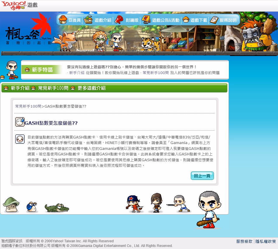 若您過去不曾接觸楓之谷,亦或是相對年輕的新人玩家,推薦您先將常見問題瀏覽一遍,有助於您在網站的使用上取得更明確的方向。