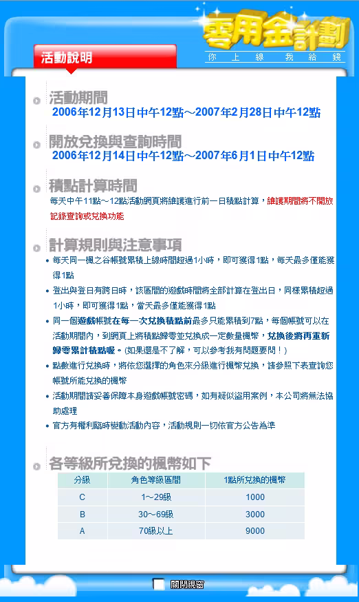 楓之谷零用金計劃開跑