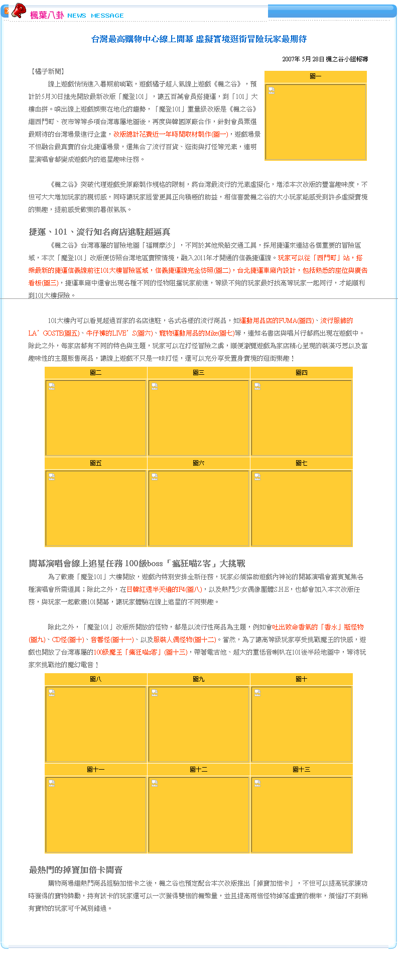 May 30, 2007 摩登101 活動日期: 2007年05月30日 V051、V052 當年官網101報導 地圖資料 全新掉寶加倍券及101相關酷炫商品熱賣中 資訊來源標題原始連結全新掉寶加倍券及101相關酷炫商品熱賣中