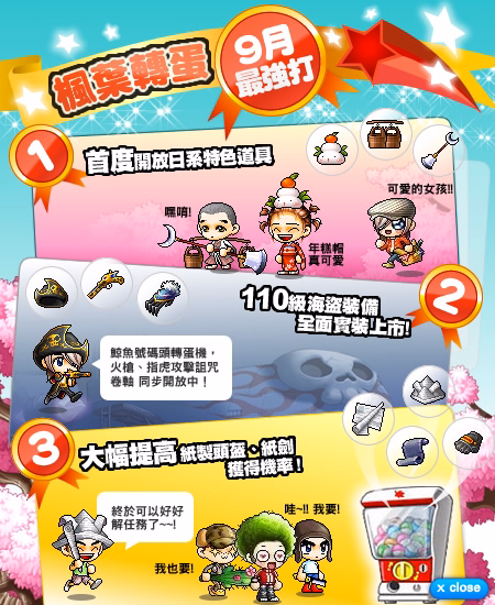 楓葉轉蛋9月最強打-日版道具、海盜裝備全收錄!