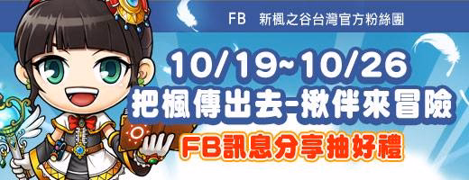 Oct 19, 2011 台灣官方FB粉絲團-把楓傳出去 活動日期:2011年10月19日18:00~2011年10月26日23:59止 (萬六提供) 資訊來源標題原始連結台灣官方FB粉絲團-把楓傳出去